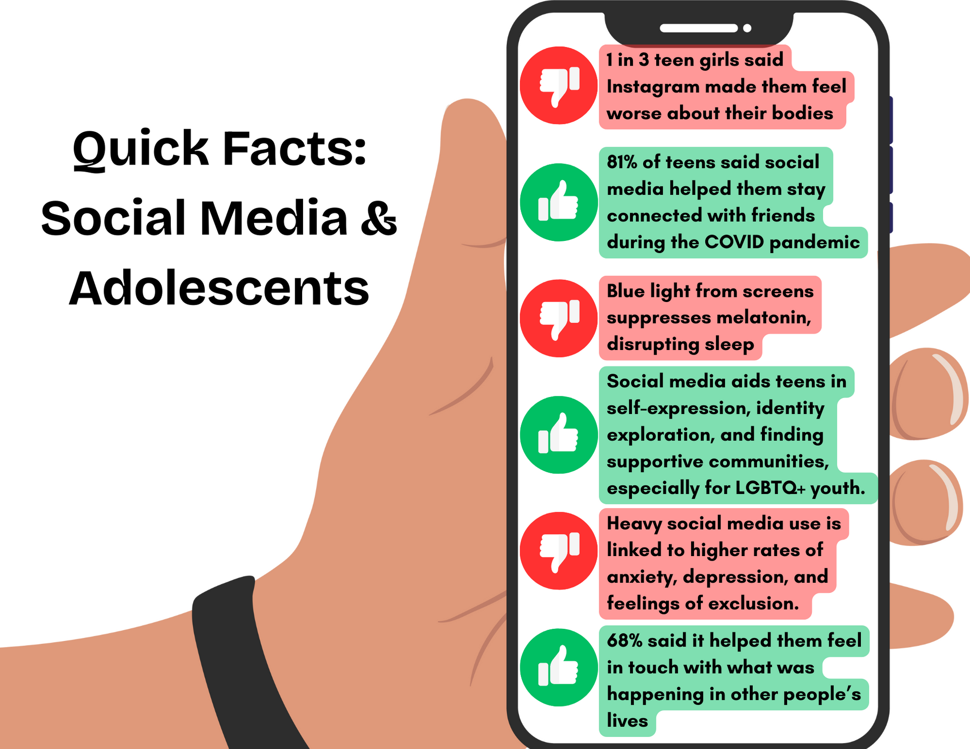 Not all social media use is negative. For many teens, especially those who feel isolated or misunderstood in real life, online spaces can be a source of support. LGBTQ+ teens, for example, often find communities online where they feel seen and accepted. These platforms can be a place to explore identity, share experiences, and connect with others who understand them.