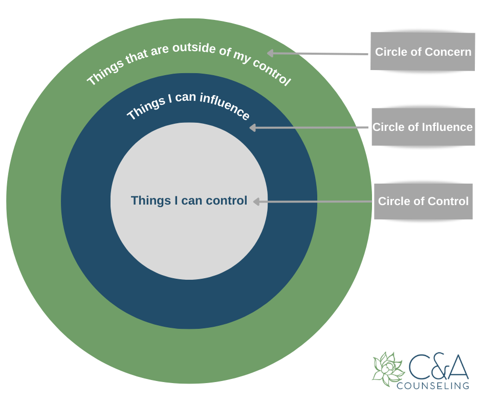 · Acceptance of the Outer Circle: In therapy, we encourage individuals to accept aspects of life that are beyond their control. Through acknowledgment and acceptance, individuals learn to relinquish futile attempts to control the uncontrollable, freeing up their time and energy to focus on areas where they can make a difference.
